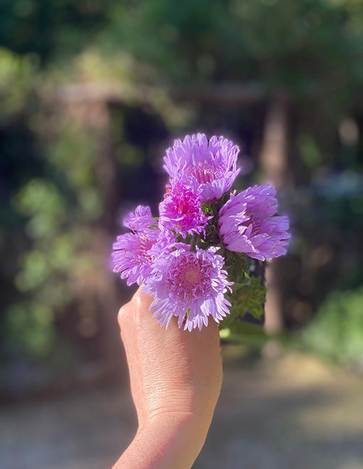 Gooseneck, China Aster and Phlox flowers, along with Lady Ferns fronds were handpicked and harvested in the Blue Ridge Mountains of North Carolina. This magical combination works in symphony to create the Reclamation Collection. Each flower and plant have its own healing energetic properties that work to magnify and dissolve the following qualities, helping to foster the art of Reclamation.
